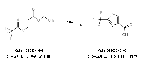 1.通过2-三氟甲基-4-羧酸乙酯噻唑合成2-(三氟甲基)-1,3-噻唑-4-羧酸,收率约90%;
