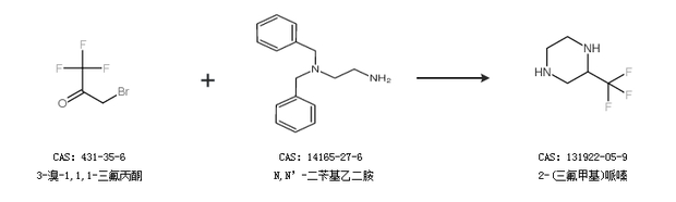 1.通过3-溴-1,1,1-三氟丙酮和N,N’-二苄基乙二胺合成2-(三氟甲基)哌嗪