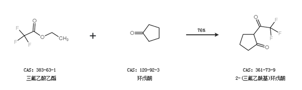 1.通过三氟乙酸乙酯和环戊酮合成2-(三氟乙酰基)环戊酮,收率约76%;