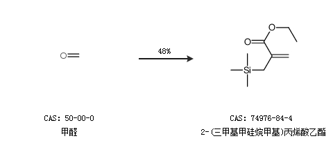 1.通过甲醛合成2-(三甲基甲硅烷甲基)丙烯酸乙酯,收率约48%;