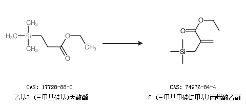 2.通过乙基3-(三甲基硅基)丙酸酯合成2-(三甲基甲硅烷甲基)丙烯酸乙酯