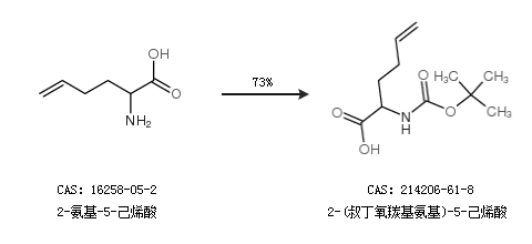 1.通过2-氨基-5-己烯酸合成2-(叔丁氧羰基氨基)-5-己烯酸,收率约73%;