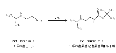 2.通过N-异丙基乙二胺合成2-(异丙基氨基)乙基氨基甲酸叔丁酯,收率约97%;