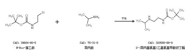 1.通过N-Boc-溴乙胺和异丙胺合成2-(异丙基氨基)乙基氨基甲酸叔丁酯,收率约77%;