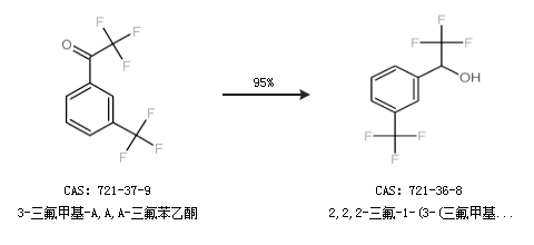 1.通过3-三氟甲基-A,A,A-三氟苯乙酮合成2,2,2-三氟-1-(3-(三氟甲基)苯基)乙醇,收率约95%;