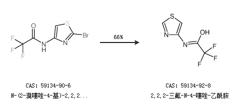 1.通过N-(2-溴噻唑-4-基)-2,2,2-三氟乙酰胺合成2,2,2-三氟-N-4-噻唑-乙酰胺,收率约66%;