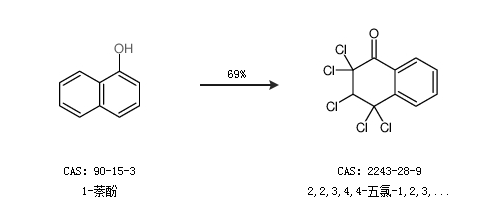 1.通过1-萘酚合成2,2,3,4,4-五氯-1,2,3,4-四氢萘-1-酮,收率约69%;