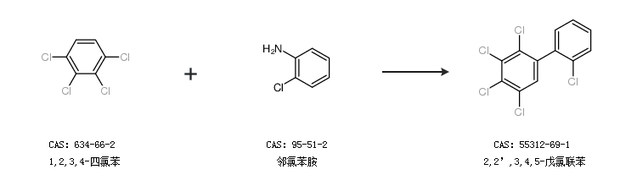 1.通过1,2,3,4-四氯苯和邻氯苯胺合成2,2’,3,4,5-戊氯联苯