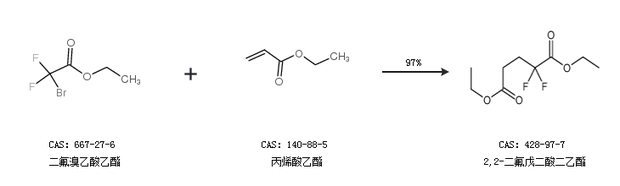 1.通过二氟溴乙酸乙酯和丙烯酸乙酯合成2,2-二氟戊二酸二乙酯,收率约97%;