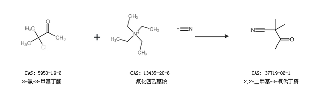 2.通过3-氯-3-甲基丁酮和氰化四乙基铵合成2,2-二甲基-3-氧代丁腈