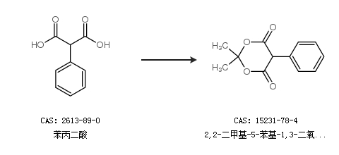 1.通过苯丙二酸合成2,2-二甲基-5-苯基-1,3-二氧杂环乙烷-4,6-二酮