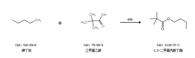 2.通过碘丁烷和三甲基乙酸合成2,2-二甲基丙酸丁酯,收率约89%;