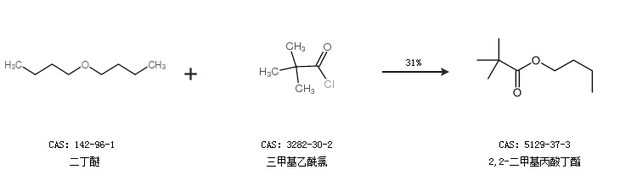 1.通过二丁醚和三甲基乙酰氯合成2,2-二甲基丙酸丁酯,收率约31%;