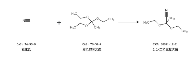 2.通过氰化氢和原乙酸三乙酯合成2,2-二乙氧基丙腈