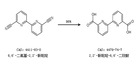 2.通过6,6''-二氰基-2,2''-联吡啶合成2,2''-联吡啶-6,6''-二羧酸,收率约98%;