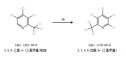 2.通过3,4,5-三氯-2-(三氯甲基)吡啶合成2,3,4,5-四氯-6-(三氯甲基)吡啶,收率约3%;