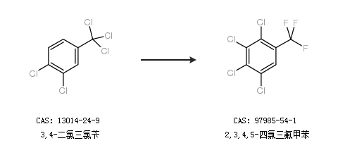 1.通过3,4-二氯三氯苄合成2,3,4,5-四氯三氟甲苯