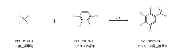 2.通过一氟三氯甲烷和1,2,3,4-四氯苯合成2,3,4,5-四氯三氟甲苯,收率约91%;