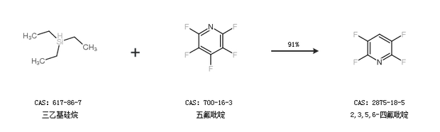 2.通过三乙基硅烷和五氟吡啶合成2,3,5,6-四氟吡啶,收率约91%;