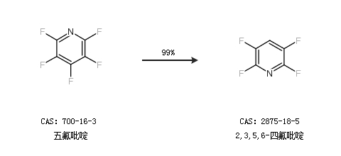 1.通过五氟吡啶合成2,3,5,6-四氟吡啶,收率约99%;