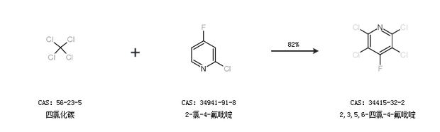 1.通过四氯化碳和2-氯-4-氟吡啶合成2,3,5,6-四氯-4-氟吡啶,收率约82%;