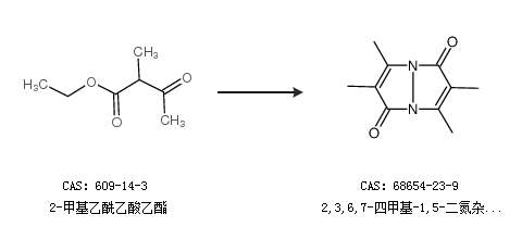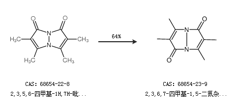 1.通过2,3,5,6-四甲基-1H,7H-吡唑并[1,2-a]吡唑-1,7-二酮合成2,3,6,7-四甲基-1,5-二氮杂双环[3.3.0]-2,6-辛二烯-4,8-二酮,收率约64%;