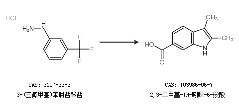 1.通过3-(三氟甲基)苯肼盐酸盐合成2,3-二甲基-1H-吲哚-6-羧酸