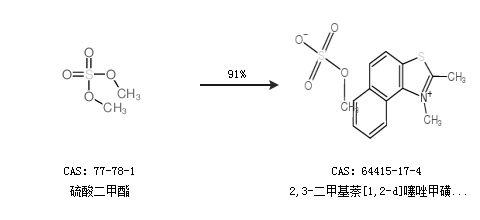 1.通过硫酸二甲酯合成2,3-二甲基萘[1,2-d]噻唑甲磺酸盐,收率约91%;