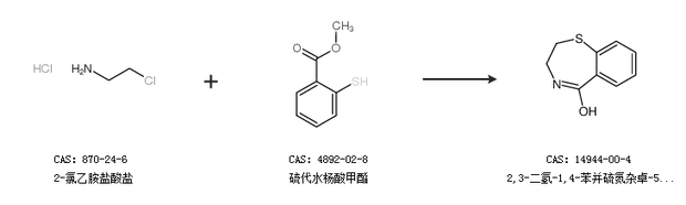1.通过2-氯乙胺盐酸盐和硫代水杨酸甲酯合成2,3-二氢-1,4-苯并硫氮杂卓-5(4H)-酮