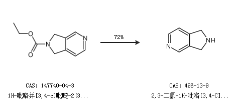 1.通过1H-吡咯并[3,4-c]吡啶-2(3h)-羧酸乙酯合成2,3-二氢-1H-吡咯[3,4-C]吡啶,收率约72%;