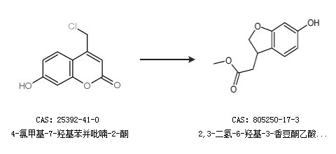 2.通过4-氯甲基-7-羟基苯并吡喃-2-酮合成2,3-二氢-6-羟基-3-香豆酮乙酸甲酯