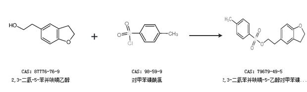 1.通过2,3-二氢-5-苯并呋喃乙醇和对甲苯磺酰氯合成2,3-二氢苯并呋喃-5-乙醇对甲苯磺酸酯