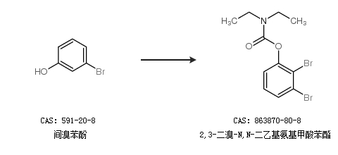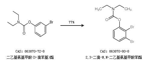 1.通过二乙基氨基甲酸(3-溴苯基)酯合成2,3-二溴-N,N-二乙基氨基甲酸苯酯,收率约77%;