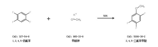 1.通过1,2,4,5-四氟苯和甲醇钾合成2,4,5-三氟苯甲醚,收率约56%;