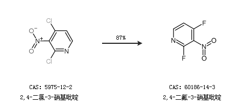 1.通过2,4-二氯-3-硝基吡啶合成2,4-二氟-3-硝基吡啶,收率约87%;