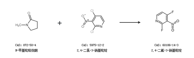 2.通过N-甲基吡咯烷酮和2,4-二氯-3-硝基吡啶合成2,4-二氟-3-硝基吡啶