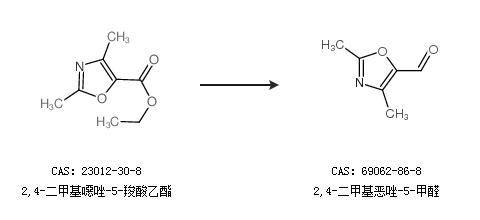 2.通过2,4-二甲基噁唑-5-羧酸乙酯合成2,4-二甲基恶唑-5-甲醛