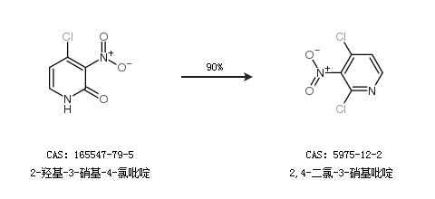 2.通过2-羟基-3-硝基-4-氯吡啶合成2,4-二氯-3-硝基吡啶,收率约90%;