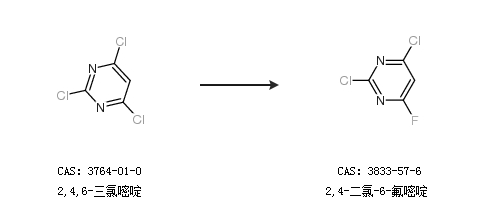 1.通过2,4,6-三氯嘧啶合成2,4-二氯-6-氟嘧啶