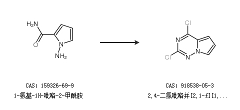 2.通过1-氨基-1H-吡咯-2-甲酰胺合成2,4-二氯吡咯并[2,1-f][1,2,4]三嗪