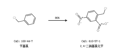 1.通过苄基氯合成2,4-二硝基氯化苄,收率约86%;