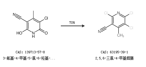 1.通过3-氰基-4-甲基-5-氯-6-羟基-2-吡啶酮合成2,5,6-三氯-4-甲基烟腈,收率约70%;