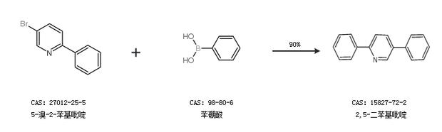 1.通过5-溴-2-苯基吡啶和苯硼酸合成2,5-二苯基吡啶,收率约90%;