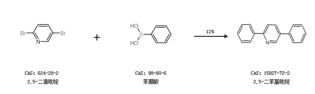 2.通过2,5-二溴吡啶和苯硼酸合成2,5-二苯基吡啶,收率约12%;