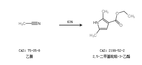 1.通过乙腈合成2,5-二甲基吡咯-3-乙酯,收率约63%;