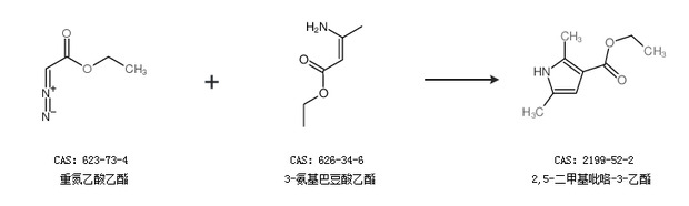2.通过重氮乙酸乙酯和3-氨基巴豆酸乙酯合成2,5-二甲基吡咯-3-乙酯