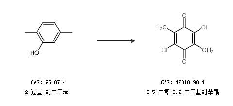 英文别名 2,5-Dichlor-3,6-dimethyl-[1,4]benzochinon;eso-Dichlor-p-xylochinon;Dichlorphloron;2,5-dichloroxyloquinone;2,5-diCl-3,6-diMe-p-benzoquinone radical;2,5-Dichloro-3,6-Dimethyl-2,5-Cyclohexadiene-1,4-Dione;2,5-dichloro-3,6-dimethyl-[1,4]benzoquinone;2,5-Dichloro-3,6-dimethyl-p-benzoquinone;
