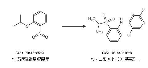 中文别名 色瑞替尼中间体;2,5-二氯-N-[2-[(1-甲基乙基)磺酰基]苯基]-4-嘧啶胺;