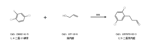 2.通过1,4-二氯-2-碘苯和烯丙醇合成2,5-二氯苯丙醛,收率约99%;