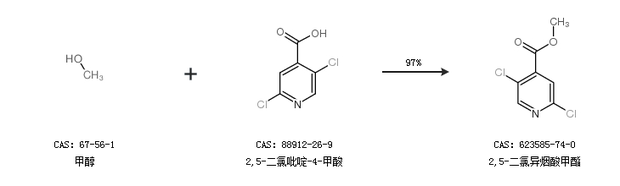 1.通过甲醇和2,5-二氯吡啶-4-甲酸合成2,5-二氯异烟酸甲酯,收率约97%;